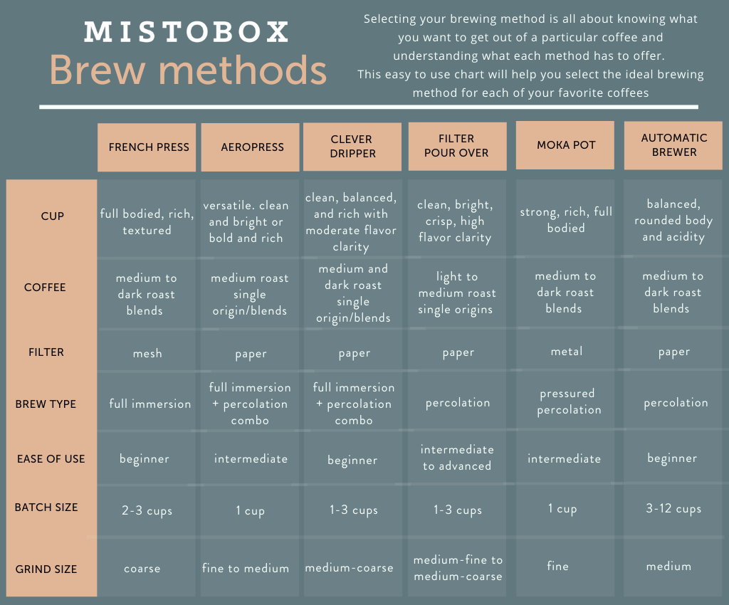 Coffee Brewing Methods Chart. Once upon a time i was a barista at a little coffee house in new orleans. Official rules no purchase necessary to enter or win. This infographic runs down the basics and helps you pick the best method, depending on your preferences. The hottest trend in coffee these days is cold. Let's start by stating the obvious: